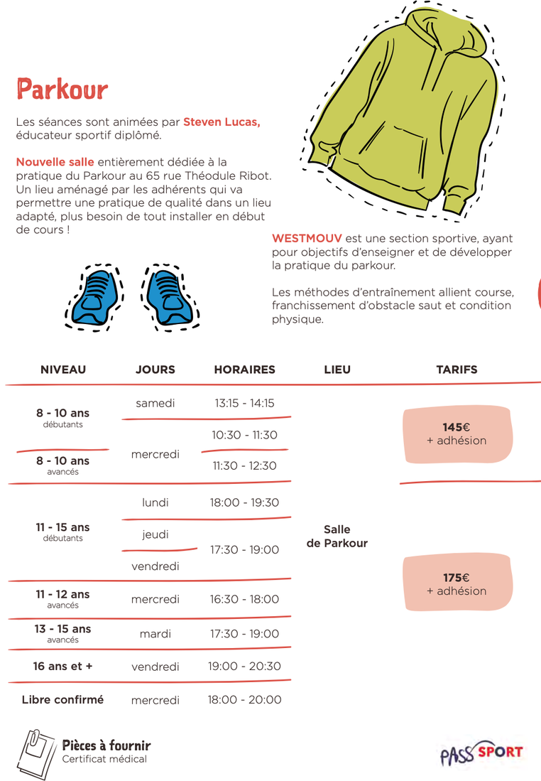 Le Parkour est une discipline qui peut être pratiqué par tous et en loisirs.